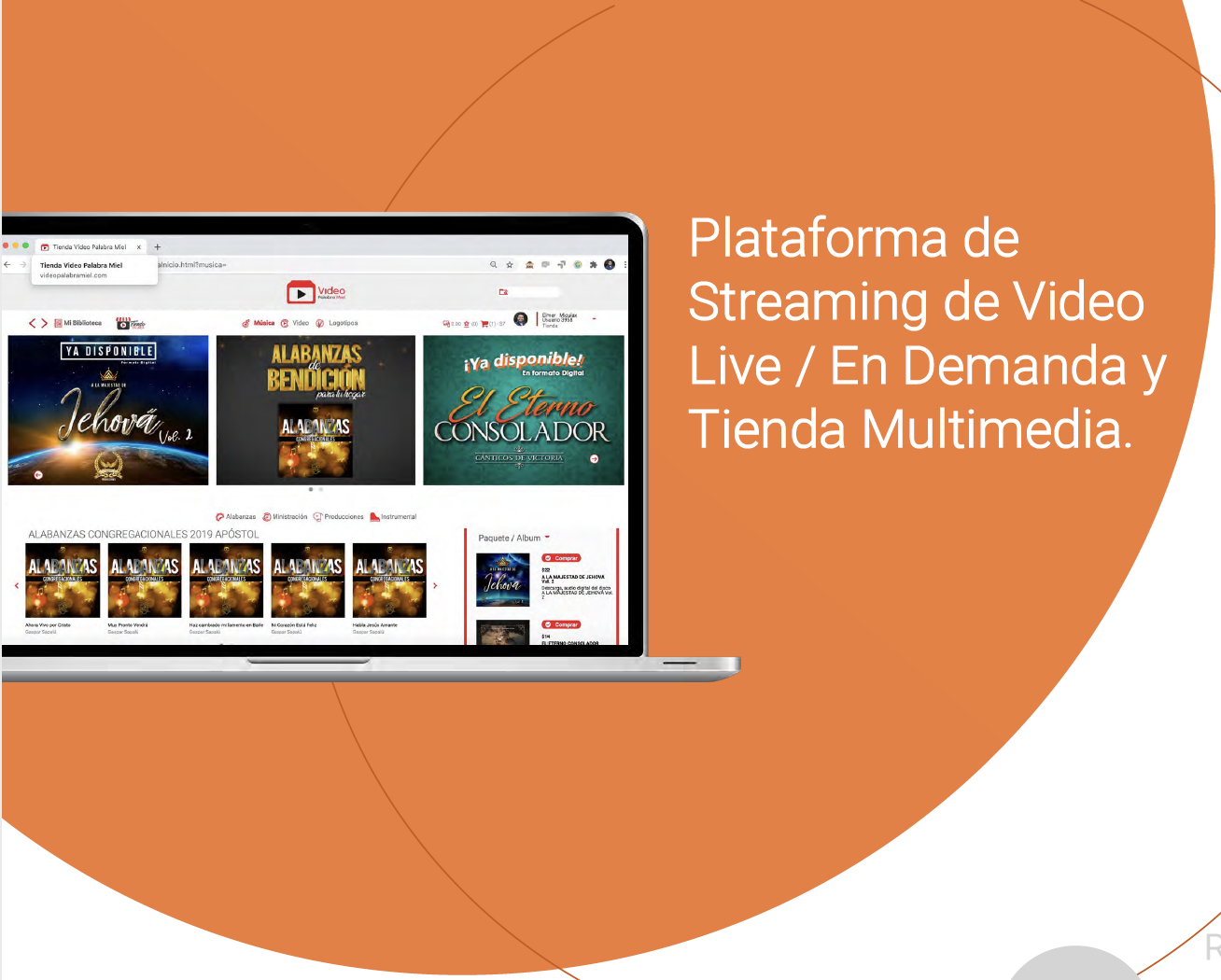 Desarrollo a la medida de Aplicación web y móvil de plataforma streaming de video en vivo, video en demanda, alquiler de videos en línea y tienda de multimedia (música, videos, imágenes) para Iglesias de Palabra Miel en Estados Unidos, Centro America, y Europa.